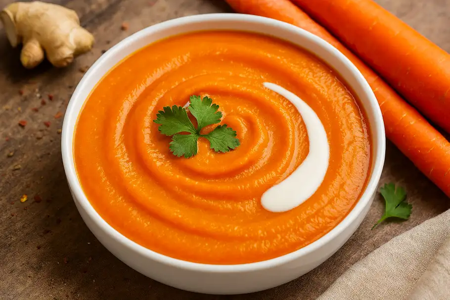 Этот рецепт раскрывает морковь с новой стороны, превращая её из привычного дополнения в главный аккорд. Крем-суп, приготовленный на пару, сохраняет всю естественную сладость и яркость овоща. Добавление свежего имбиря вносит лёгкую, согревающую ноту, которая не перебивает, а дополняет вкус, создавая гармонию. Способ приготовления на пару делает блюдо особенно нежным и позволяет максимально сохранить полезные свойства каждого ингредиента. Такой суп - это чистый вкус, насыщенный цвет и ощущение лёгкой, но полноценной трапезы.