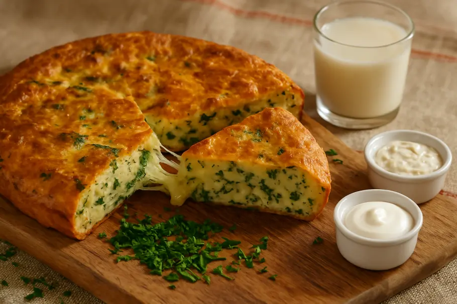 Потрясающе ароматный сырный пирог с зеленью и чесноком, идеальное угощение для завтрака, перекуса или праздничного стола. Хрустящая корочка, тянущаяся начинка из сыра и свежая зелень делают этот пирог настоящим кулинарным открытием!