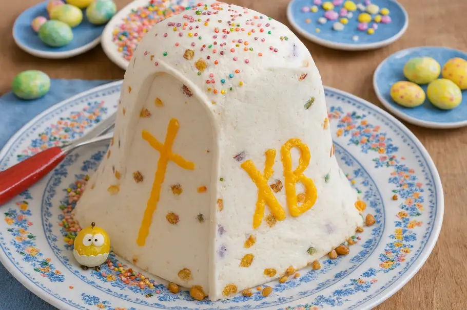 Подача. Аккуратно извлеките пасху из формы, снимите марлю. Украсьте по желанию: цукатами, орехами или цветной посыпкой.