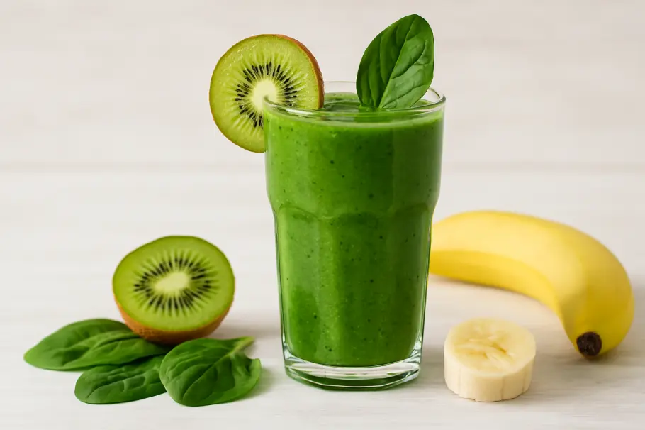 Питательный зеленый смузи с киви и шпинатом для здорового питания. Этот витаминный напиток богат антиоксидантами и клетчаткой, идеален для детокса и утреннего заряда энергии. Быстрый и простой рецепт для ПП и свежести!
