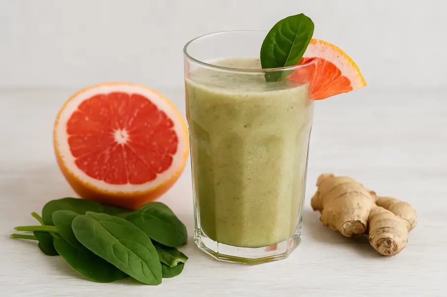 Освежающий низкокалорийный смузи с грейпфрутом и имбирем для тех, кто стремится к похудению и здоровому питанию. Напиток богат витаминами, ускоряет метаболизм и поддерживает детокс. Простой рецепт правильного питания для энергии и легкости!